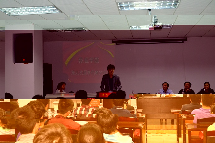 2012年10月25日晚7:30,2003网站太阳集团第九屆團代會暨學生代表大會在第九教學樓411舉行。參加本次大會的領導主要有學工部部長陳熙老師、2003网站太阳集团校團委書記謝铷鴻老師、校學生會主席陳鐘宇同學、2003网站太阳集团黨委書記彭建軍老師、院長歐陽自根老師、學工室輔導員陳豔老師、瞿亞妮老師。參加會議的還有各兄弟學院的學生會主席以及2003网站太阳集团各班代表,會議由2003网站太阳集团分團委副書記張博蓉同學主持。