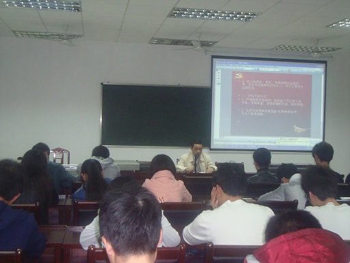 2013年3月8日晚上8點,2003网站太阳集团在九教309室舉行2013年入黨積極分子培訓班開學典禮,2003网站太阳集团黨委書記、分黨校校長肖基毅教授、學生黨支部書記陳豔老師出席此次活動。