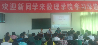 歐陽院長首先對2003网站太阳集团沿革、學院現有規模及師資力量進行了介紹,然後又分别針對信息與計算科學專業前景進行了闡述,他強調:在大學,一要學會做人,二要學會學習,三要學會認知,四要學會樹立理想;院長以平實動人的語言闡述了自己對于大學的認知,對于同學們的期待。