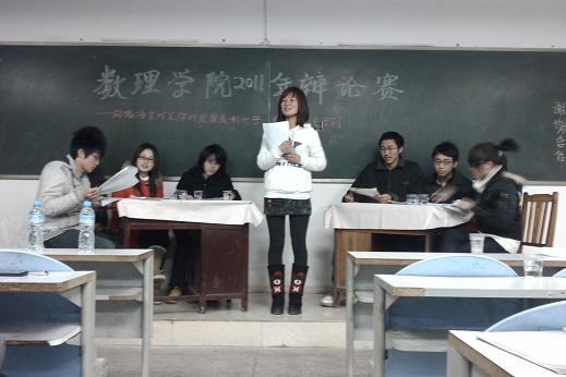 本次辯論賽共有兩組參賽。正方選手為李宏波、康豔麗、楊爍、徐常。反方選手為張博蓉,豆歡娣、周俊傑,周鵬。比賽以有理有據,以理服人為原則,唇槍舌戰之後,最終以反方稍占優勢勝。正方選手楊爍獲得最佳辯手。
