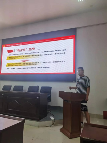 高朋珍同學以二十大精神慷慨激昂的引入,強調了全面深入理解中國式現代化的重要性。宣講分為四個部分,第一部分是認識中國式現代化的發展邏輯,中國式現代化有其自身的發展邏輯,它是與中華民族偉大複興緊緊連在一起的,中國式現代化的發展邏輯,充分說明了我們黨對曆史發展客觀規律的深刻把握,也充分證明了通過中國式現代化推動中華民族偉大複興這一曆史進程的不可逆轉。第二部分是理解中國式現代化的核心要義,這一部分從中國式現代化的特征和中國式現代化的本質要求兩個方面向同學們展開細緻闡述。第三部分是如何把握中國式現代化的前進方向,中國式現代化必須與黨和人民的方向一緻,走中國特色社會主義道路,中國式現代化必須與中華民族偉大複興的方向同行,實現強國目标。第四部分是激揚青春夢,奮進新征程。在新時代、新起點、新征程中,我們作為共産主義接班人要做有能力、有理想的時代新青年;要堅定理想信念,深刻感知曆史性成就、曆史性變革;要敢于擔當,在民族複興的賽道上接續奮鬥;要能吃苦耐勞,自覺擔當時代重任;要肯于砥砺奮鬥,保持永不懈怠的精神狀态。始終做到不忘跟黨初心,不負偉大時代。